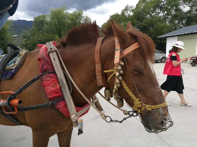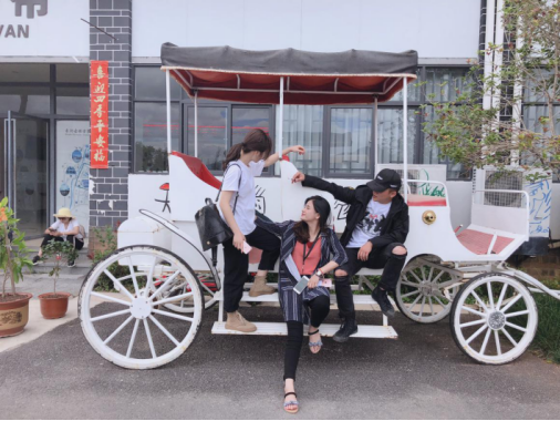 一家人坐在馬車上,享受著束河古鎮(zhèn)的寧靜。